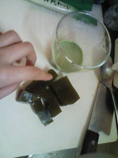 その中へさいの目切りにした抹茶わらびもちをタイブ!