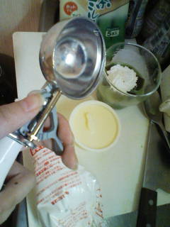 アイスのカップにディッシャーが入りきらなかったのでスプーンですくってディッシャーに敷きつめましたww