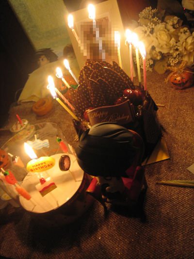 皆撮影に一生懸命でチョコレートがローソクの火の熱で溶けて、あふろがちりじりになりましたとさ^^^