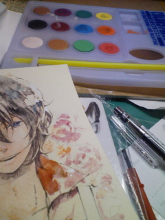某様に送るイラストを描きたくて100均で絵の具を購入してきたんだが筆がヒドすぎて紙がボロボロであるWWW